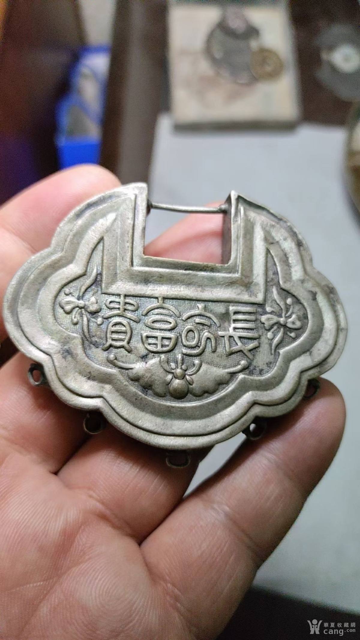 清代!福在眼前!溜银白铜锁!150