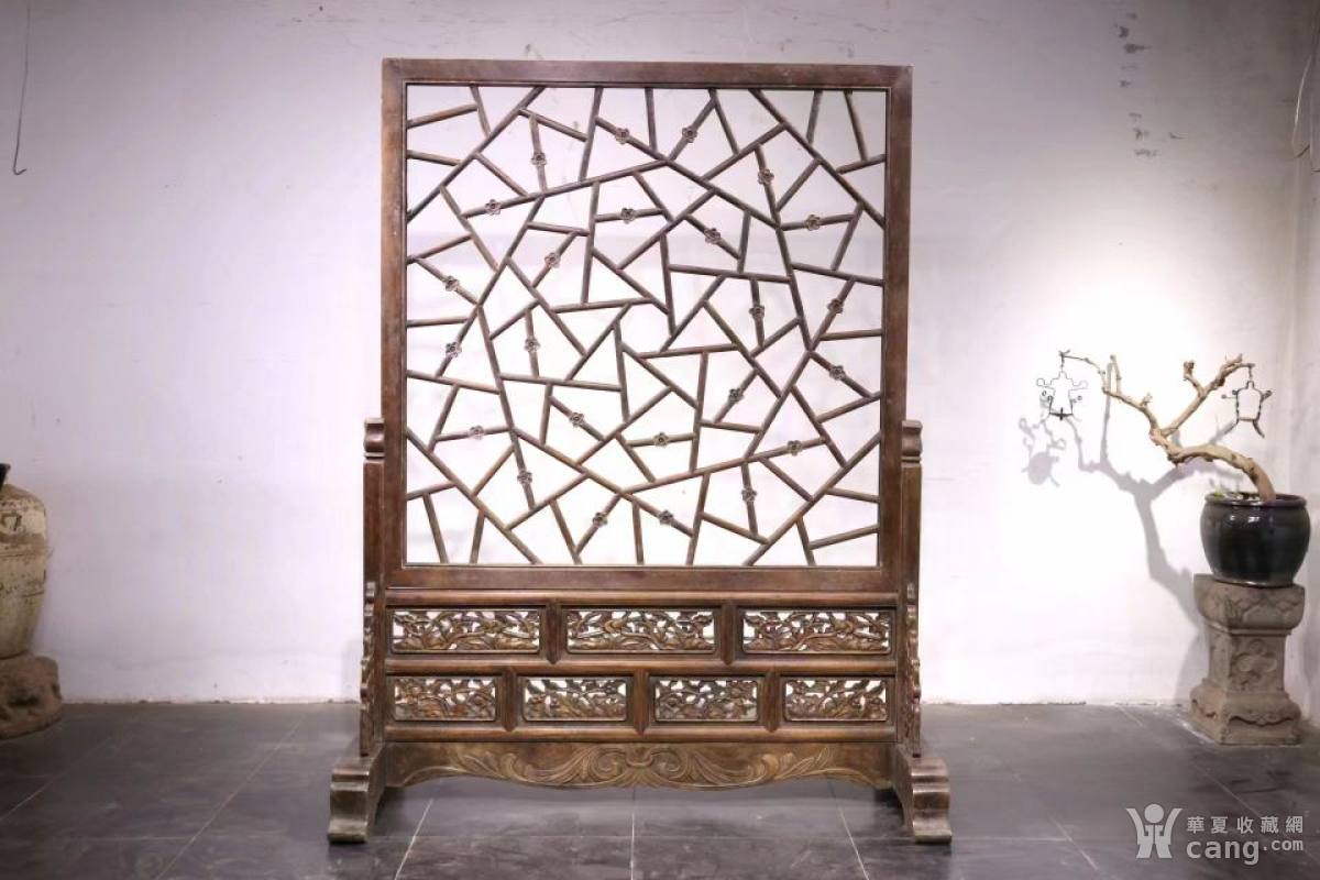 明式落地屏 造型简洁大气 雕刻精致细腻 置于室内显著位置 气