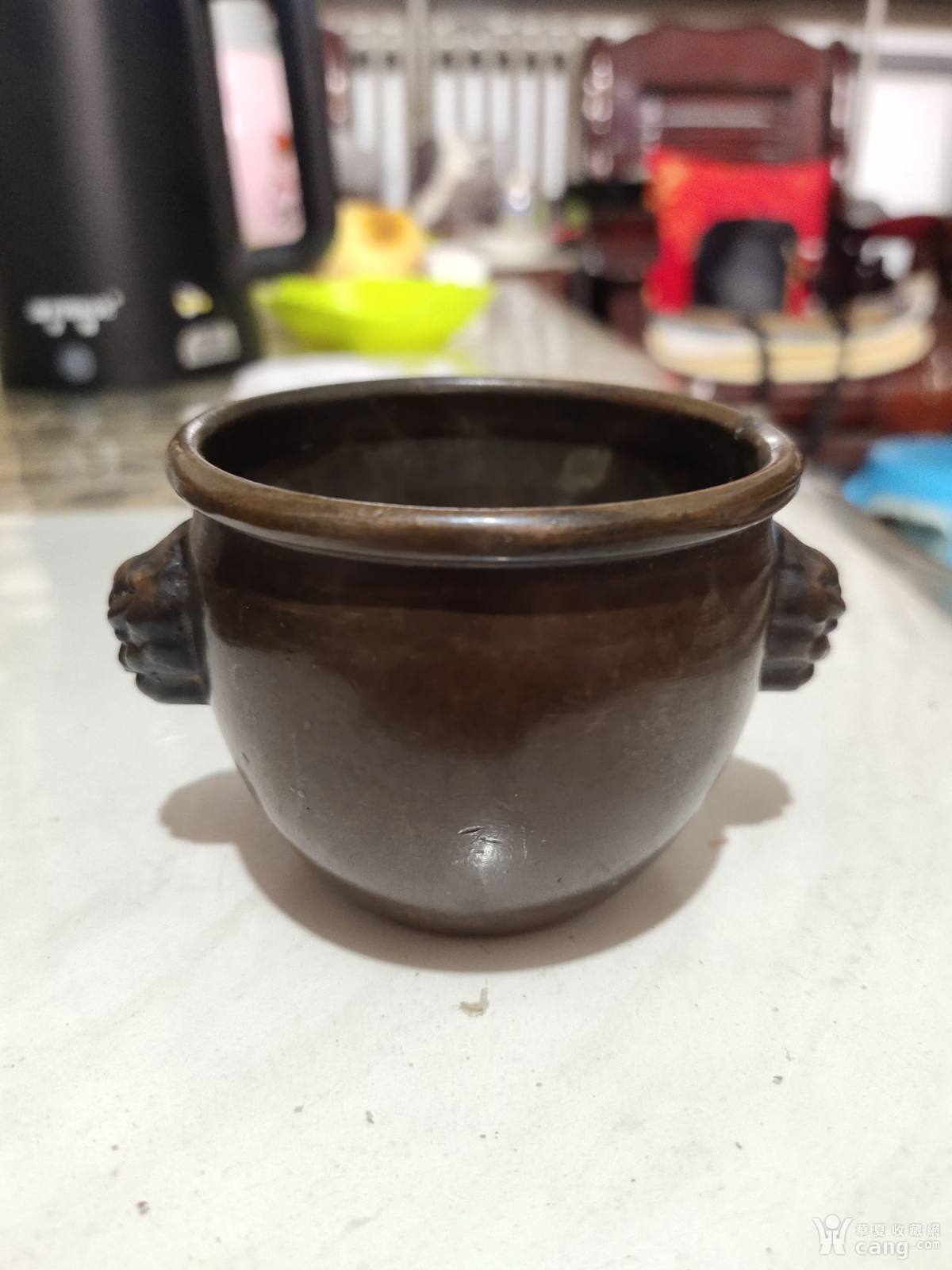 清代黄铜狮子铺首小个香炉一个,完整。底款飞云阁。