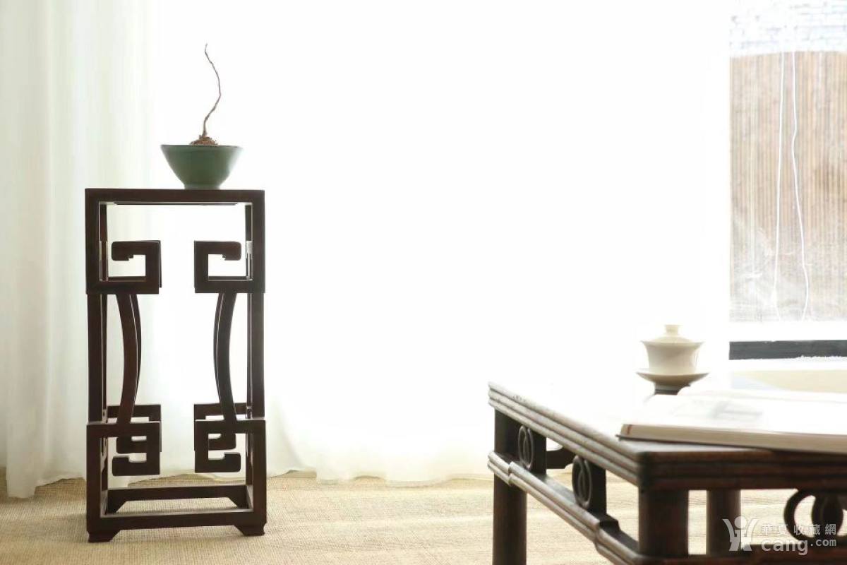 红木拐子纹嵌大理石花几 清代,红木,纹理细密紧致,皮壳温