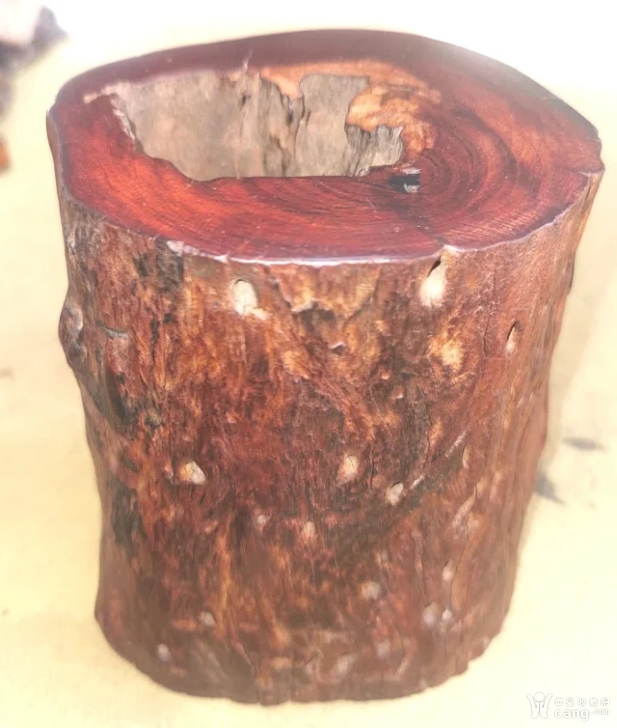 正宗印度小叶紫檀木料,原木随型笔筒【913】