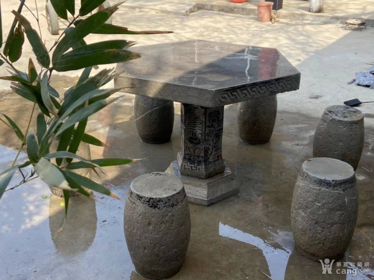 清代青石庭院桌,一桌六凳原套,全品,尺寸:桌对边91/91c