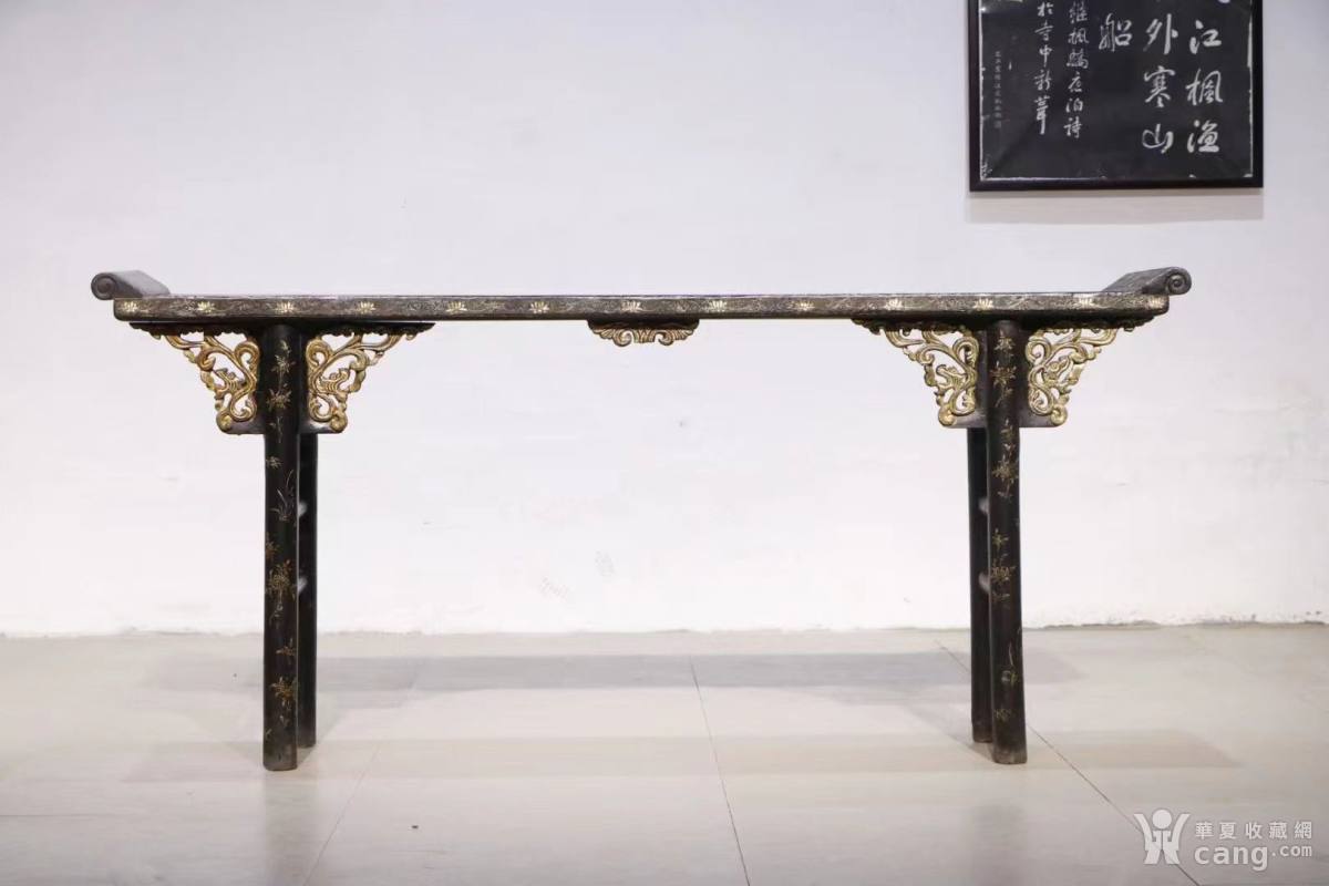 大漆描金|翘头案 清代,此器为独板,黑漆为底
