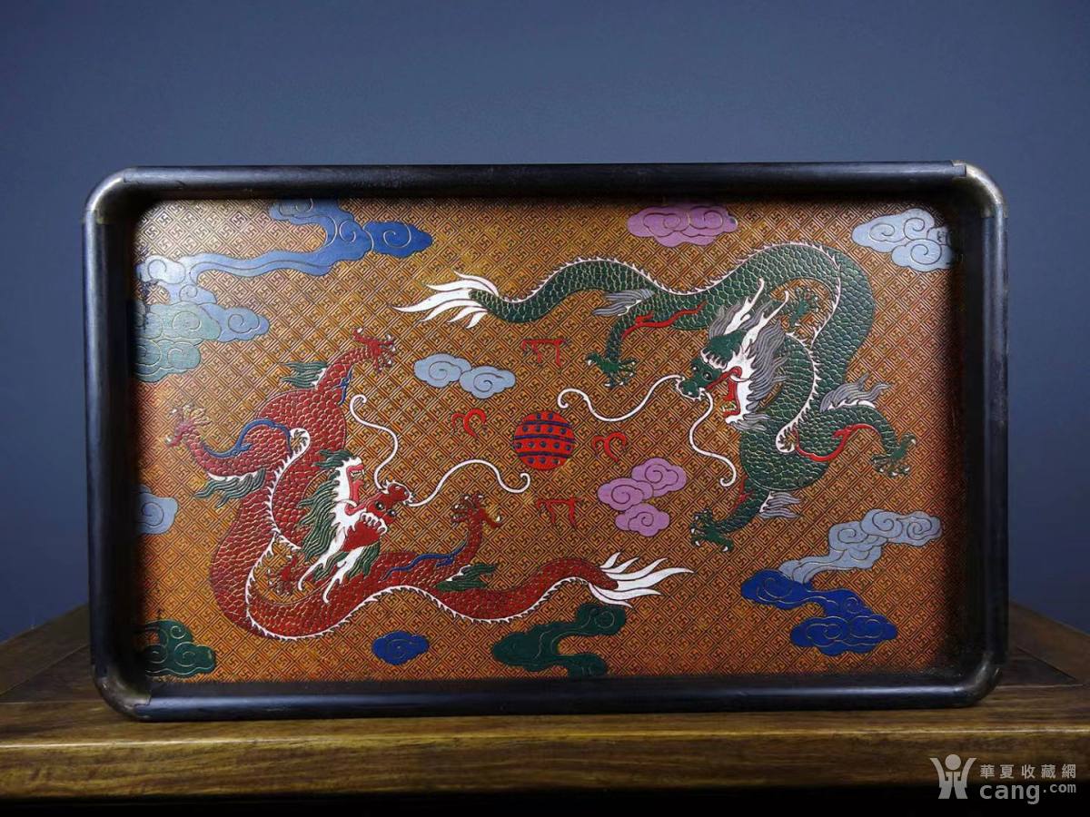 旧藏紫檀木镶嵌漆雕彩绘盘子茶盘果盘 尺寸:长35cm宽21c