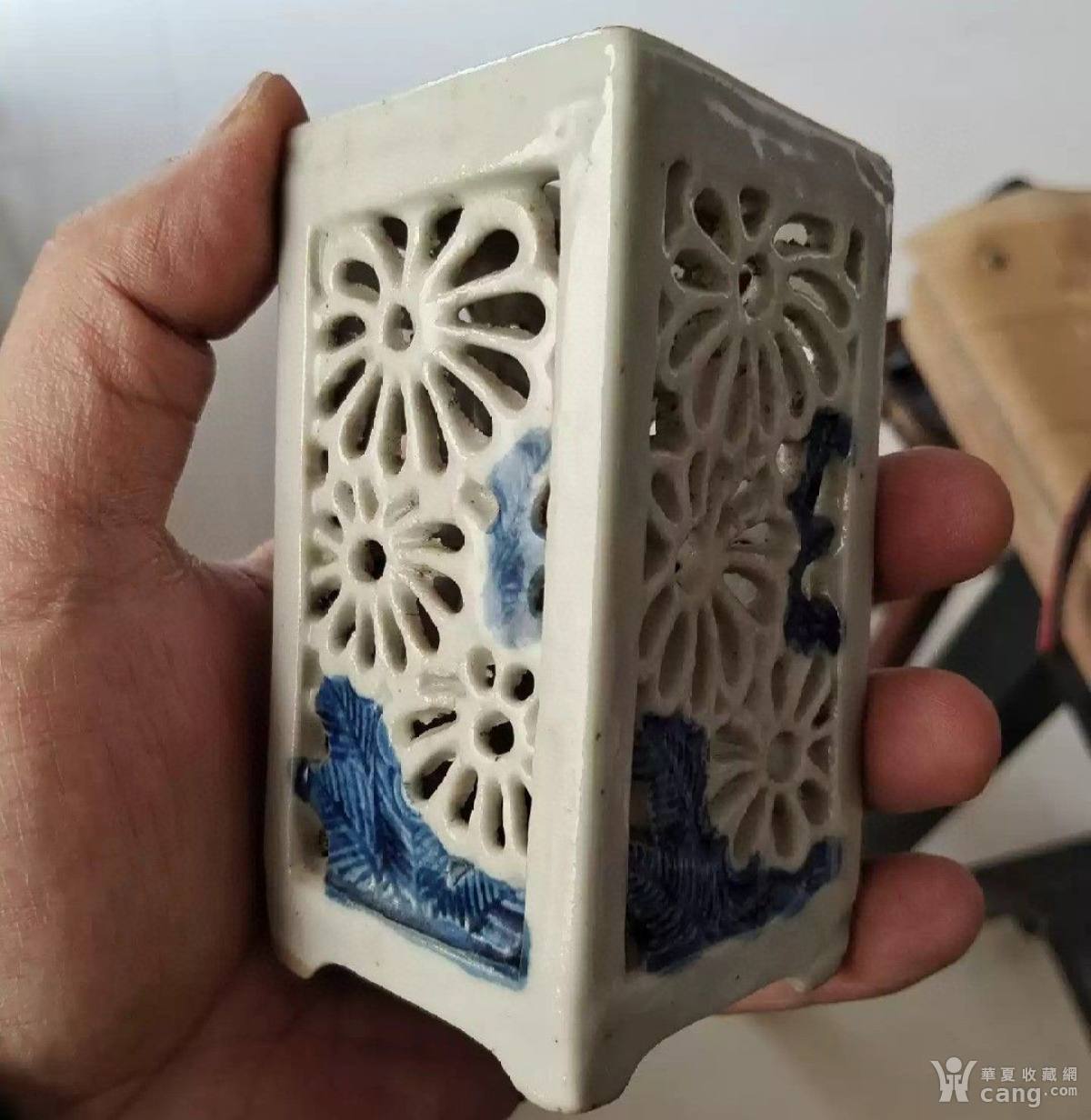 民国四方镂空青花笔筒