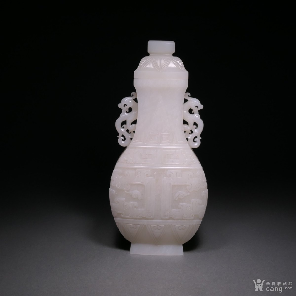 清 和田玉饕餮纹龙耳赏瓶。