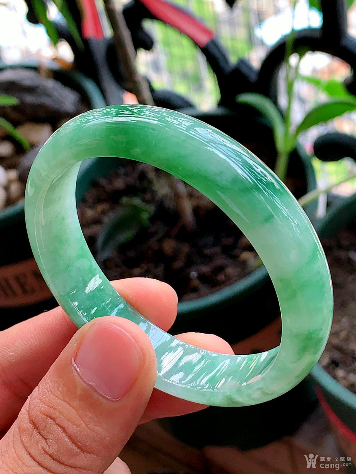 缅甸天然翡翠A货冰透水润飘花宽边手镯58.6圈口