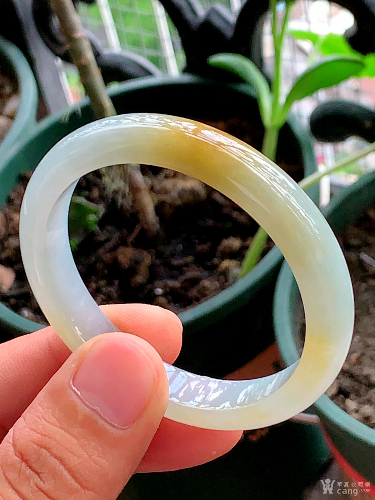 缅甸天然翡翠A货冰透水润飘黄翡宽边手镯53.6圈口