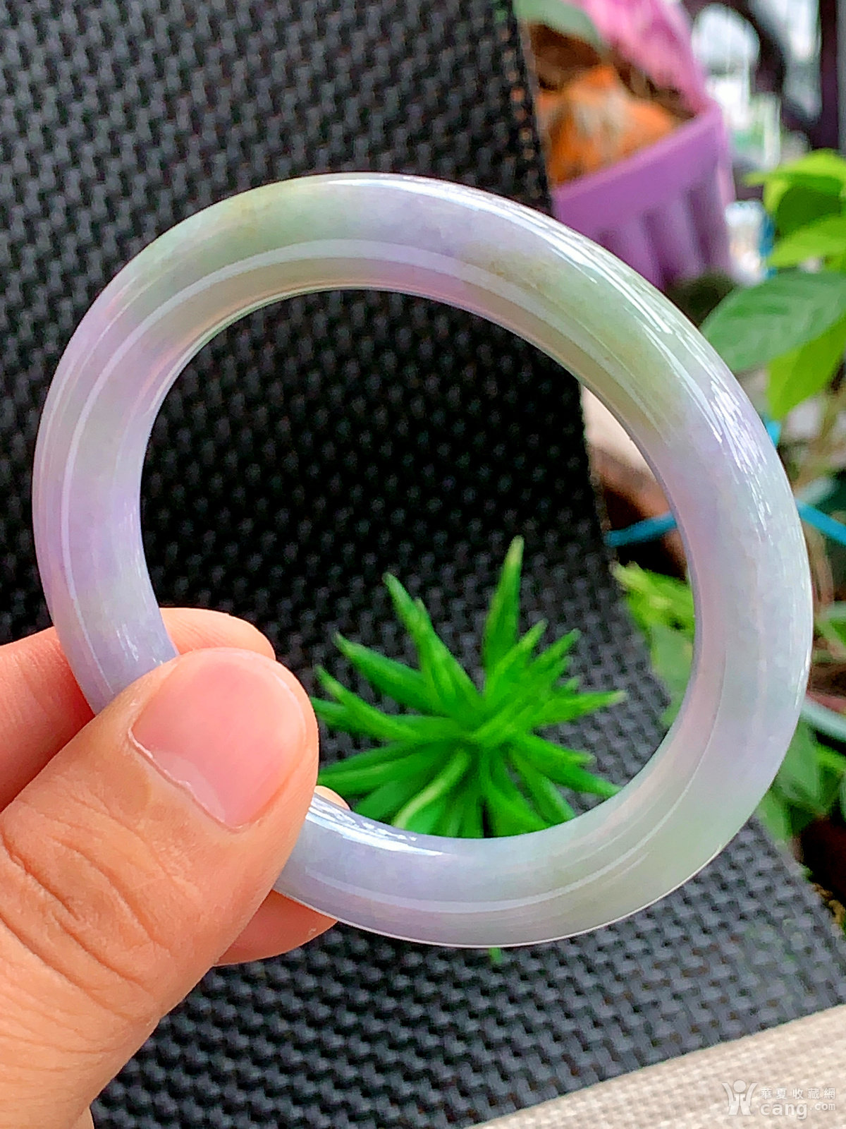 缅甸天然翡翠A货冰润紫黄圆条手镯57.5圈口