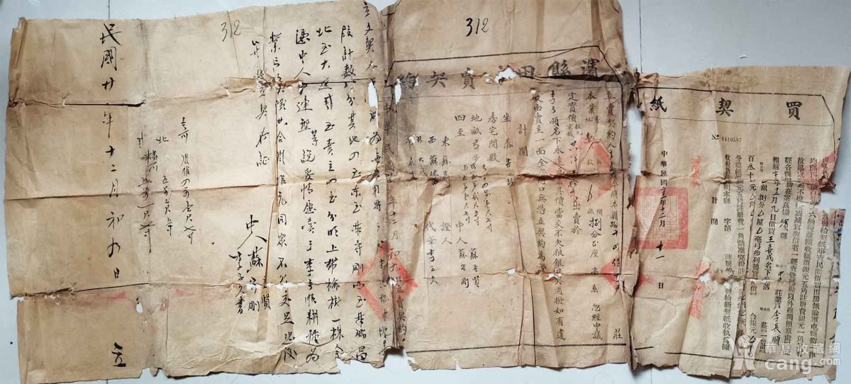 民国二十三年山东省滨县田房买卖契约三联