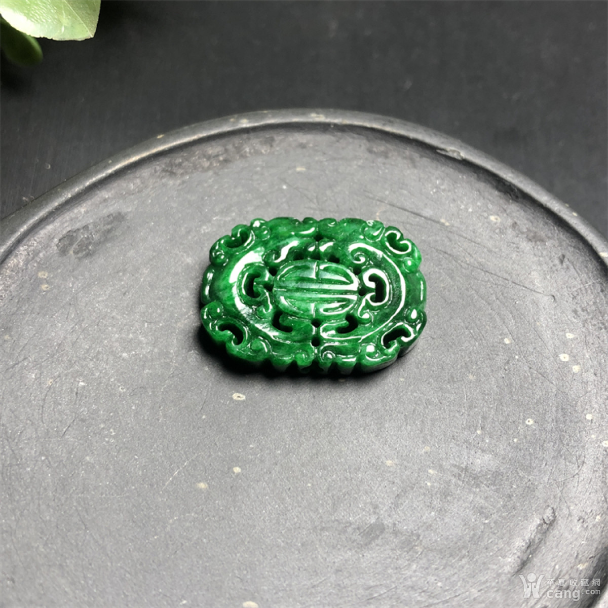 E720创汇期糯冰种飘辣绿翡翠团寿龙纹背云吊坠