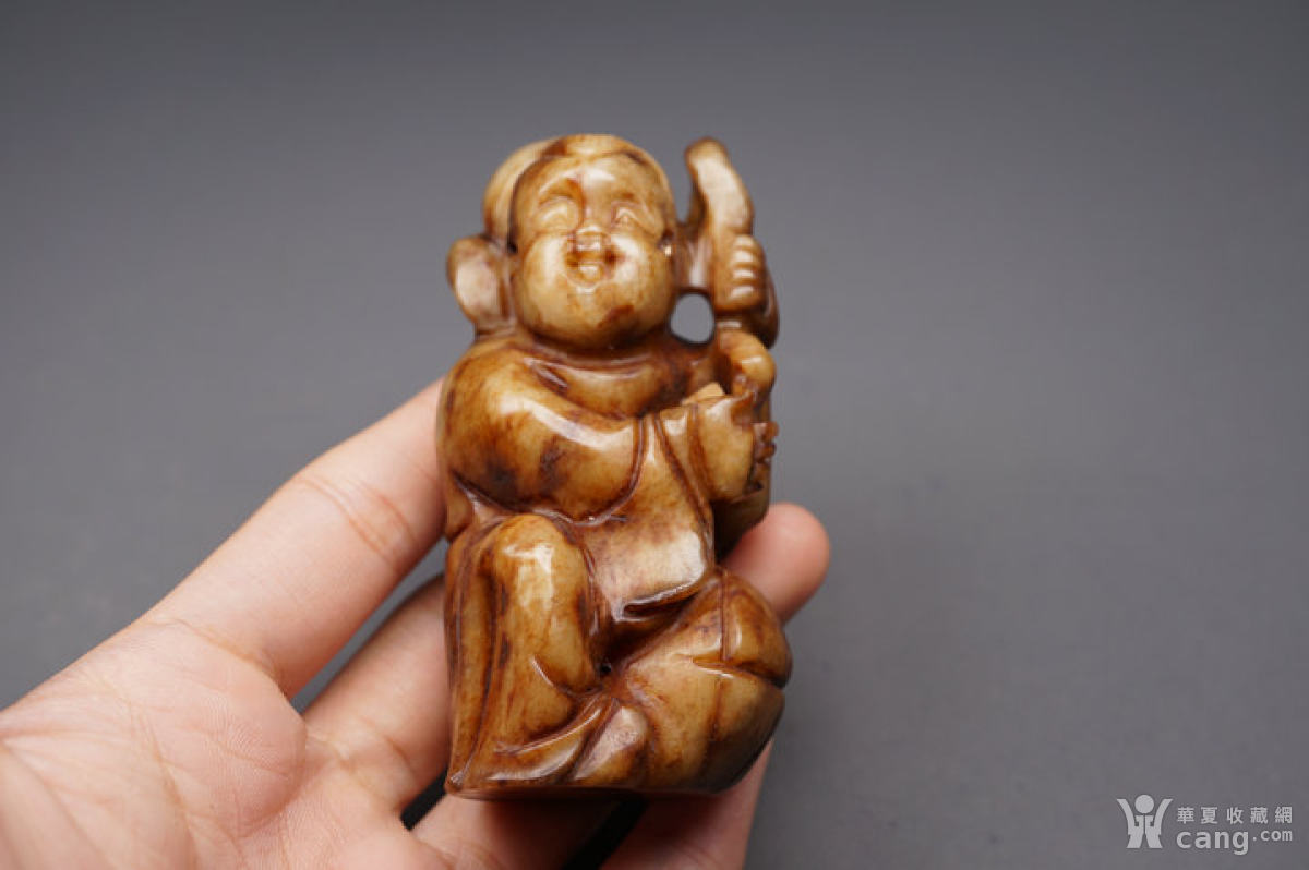 [糖羊脂白玉]和田玉糖白玉笑口常开弥勒佛挂件吊48.85g