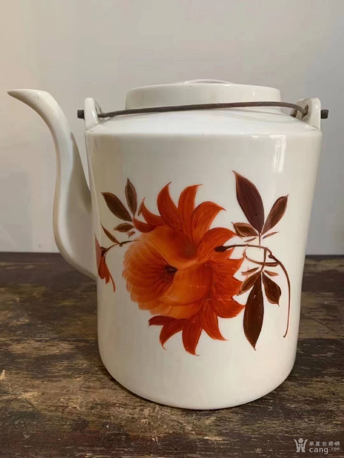 建国初大号花卉提梁壶