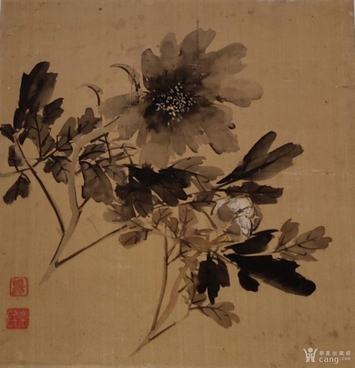 清代画家汤禄名绢本牡丹册页