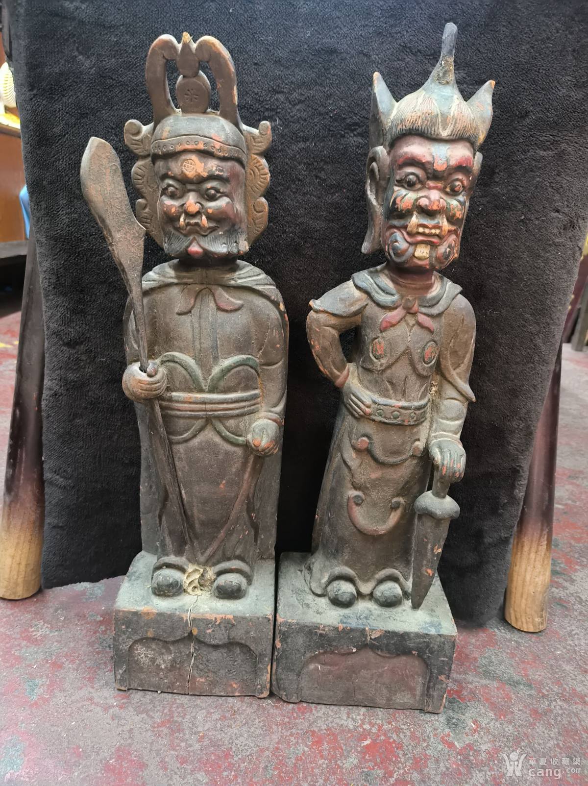 哼哈二将木雕一对