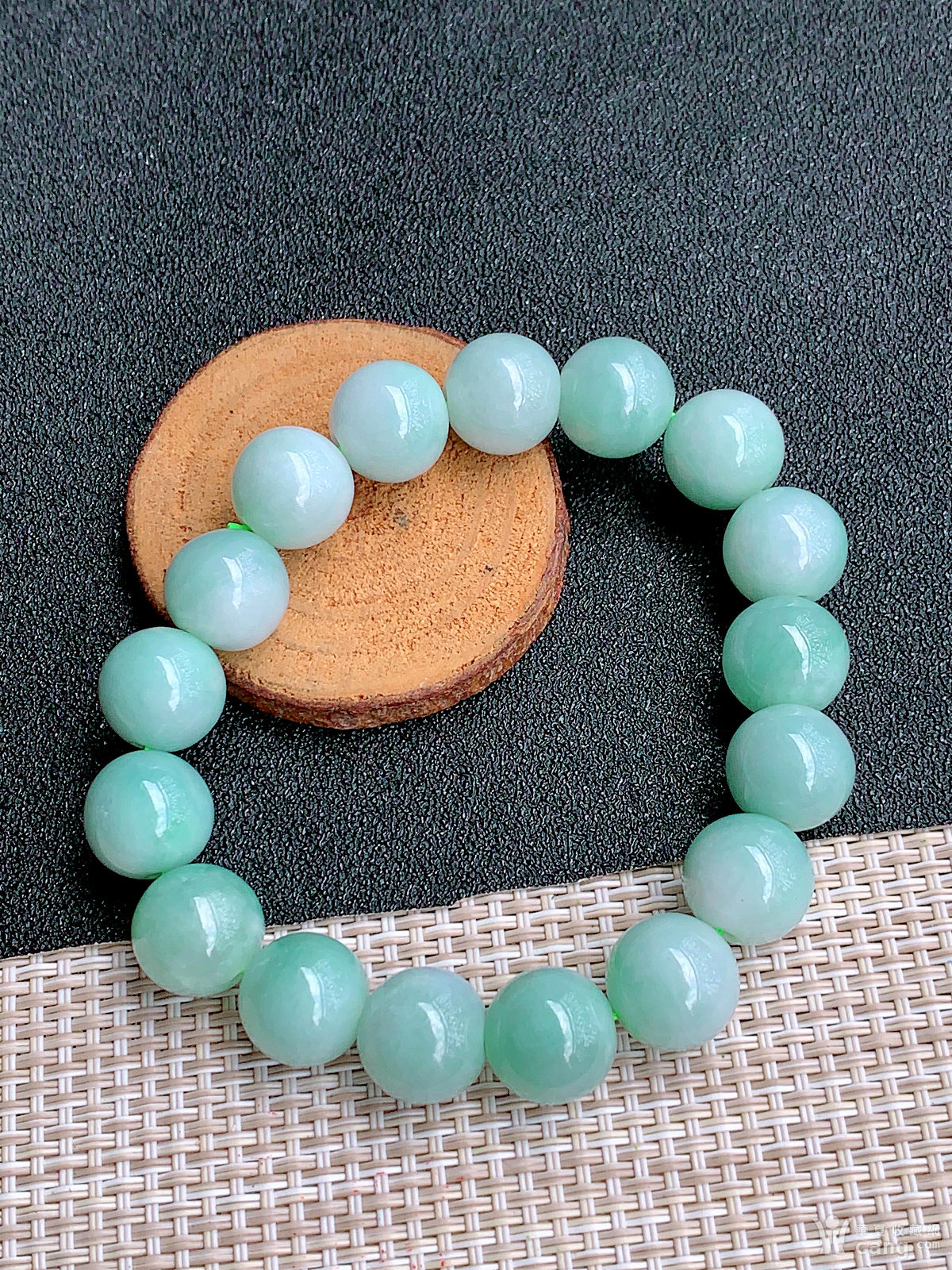 缅甸天然翡翠A货冰透浅绿圆珠手串