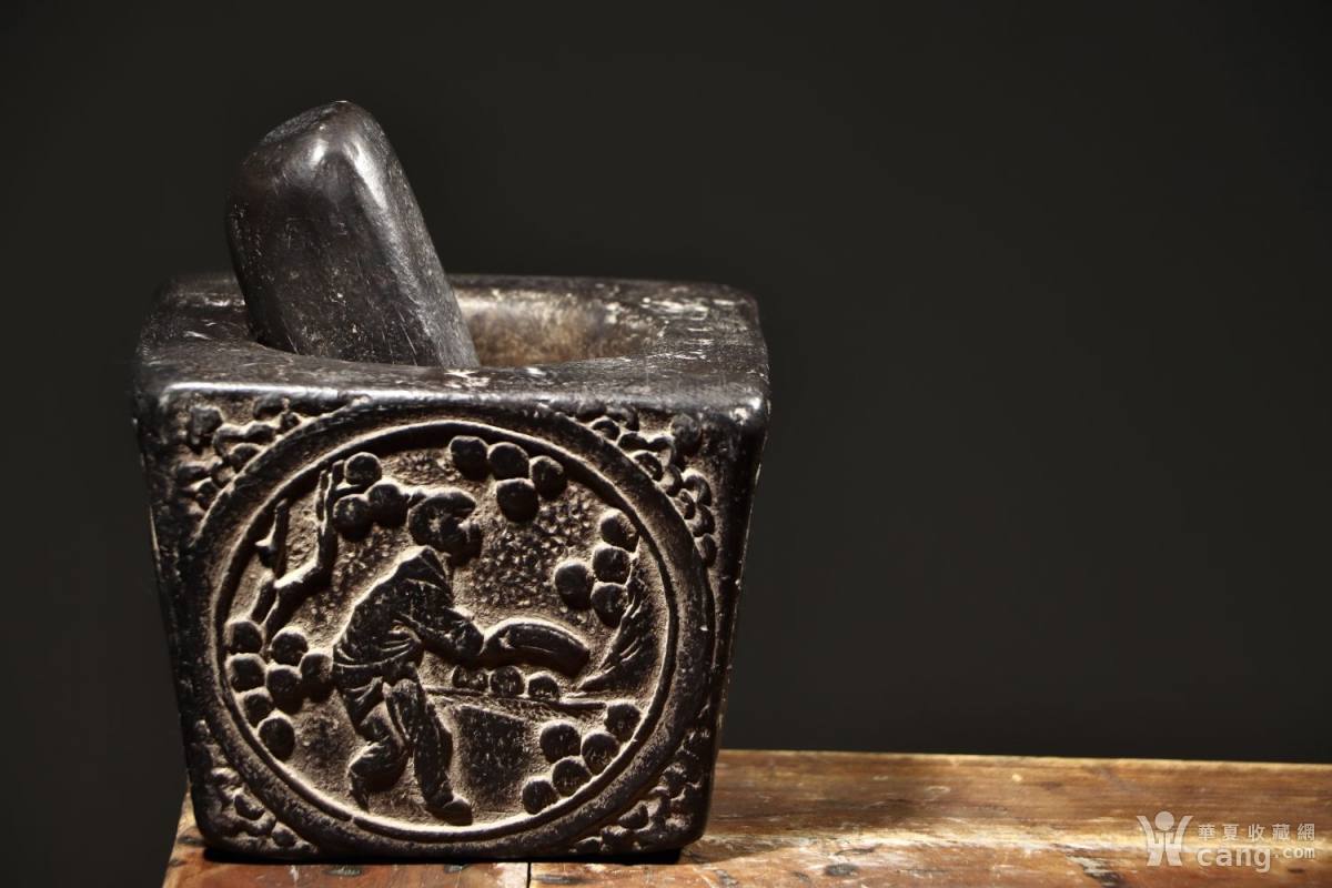高浮雕动物 花卉 ~方石臼 四面工艺 玻璃皮壳 品相一流
