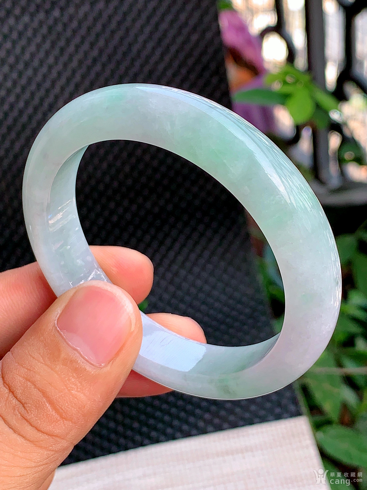 缅甸天然翡翠A货冰透水润飘花宽边手镯56圈口