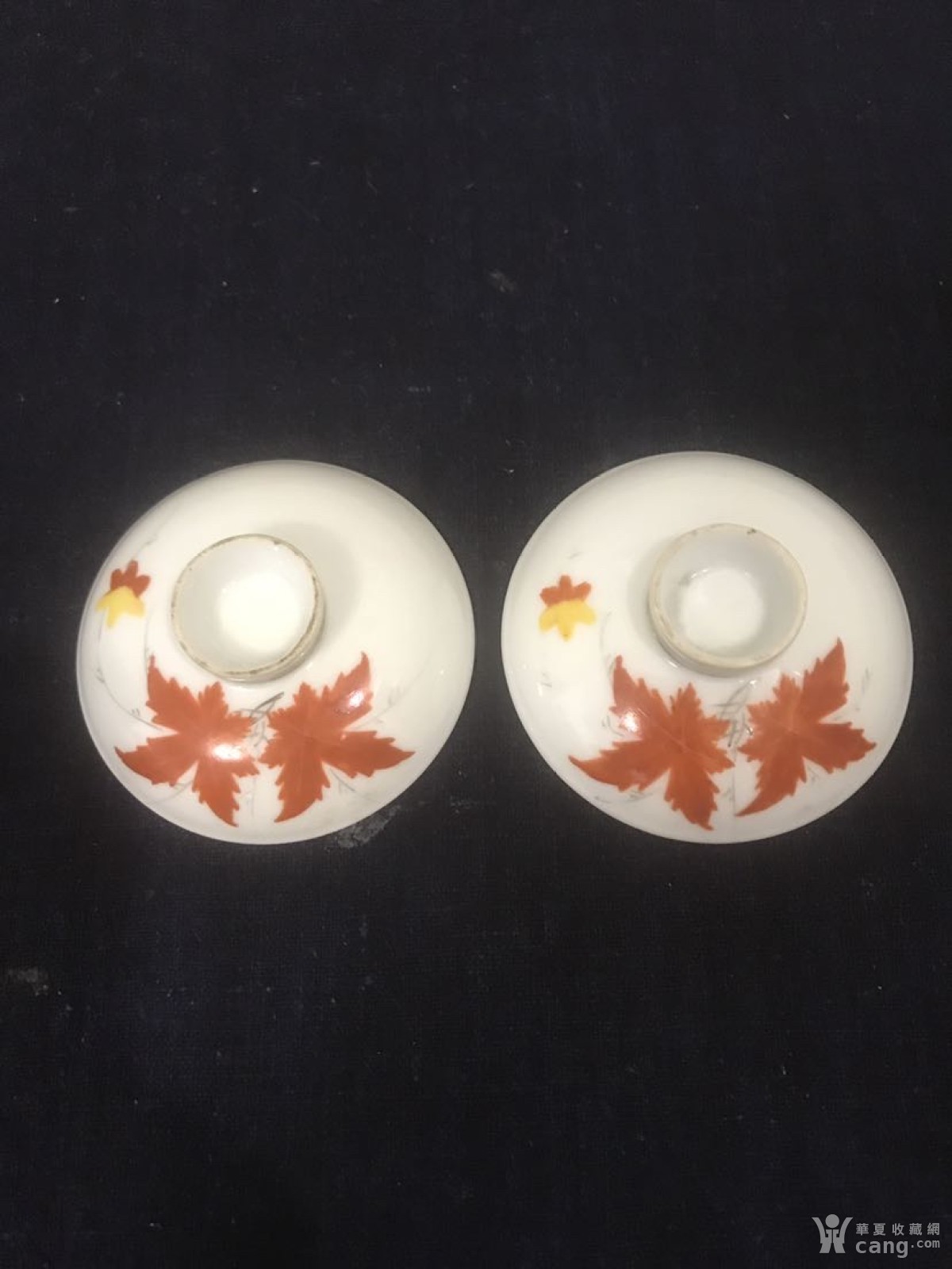 民国薄胎全品枫叶盖碗盖一对
