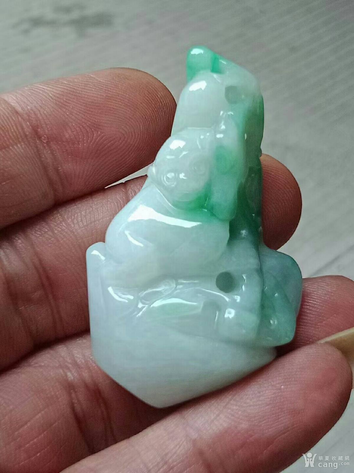 缅甸翡翠A3371-2A阳绿灵猴献寿摆件(送证书)