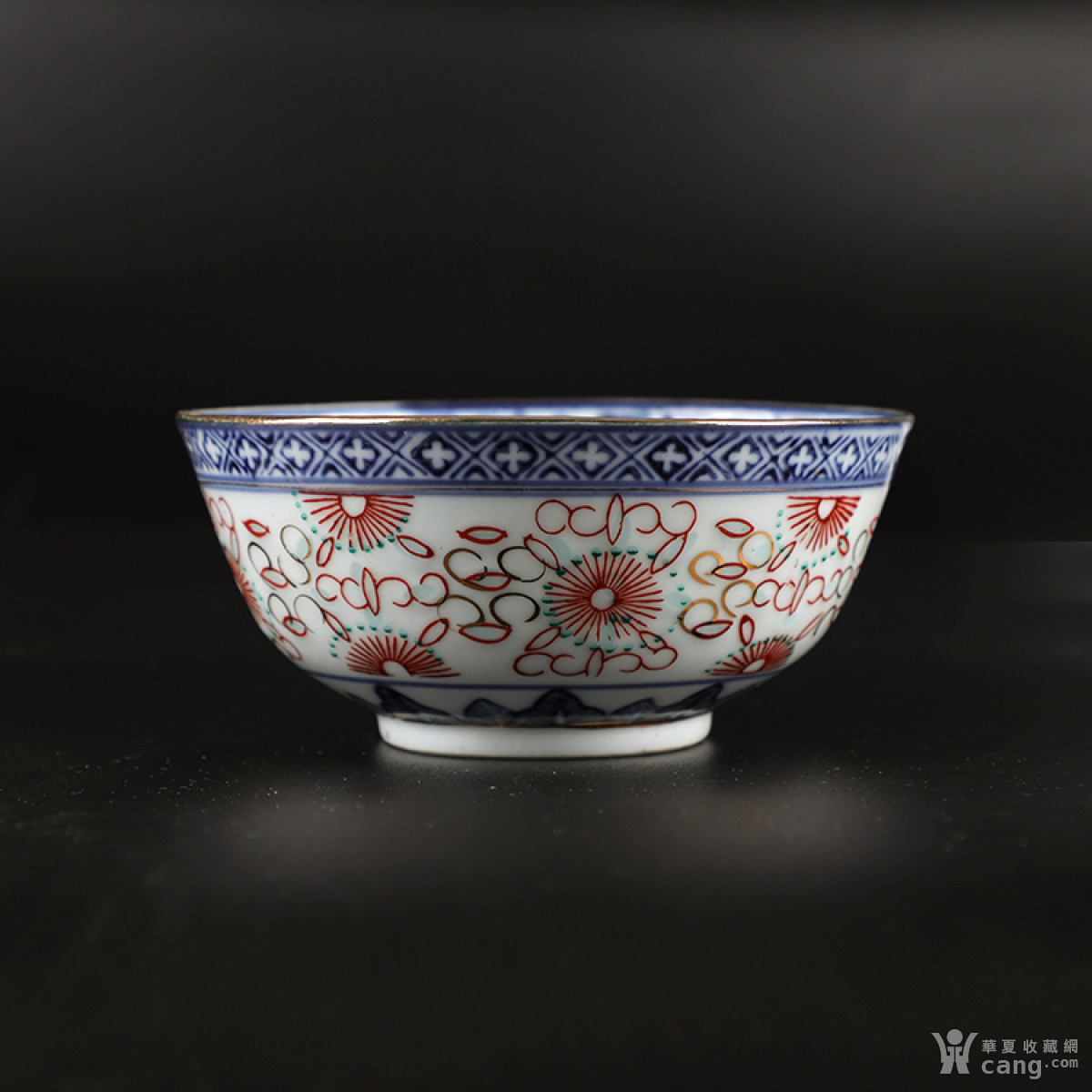 民国时期瓷器/玩玉款/手绘青花彩玲珑 斗彩碗