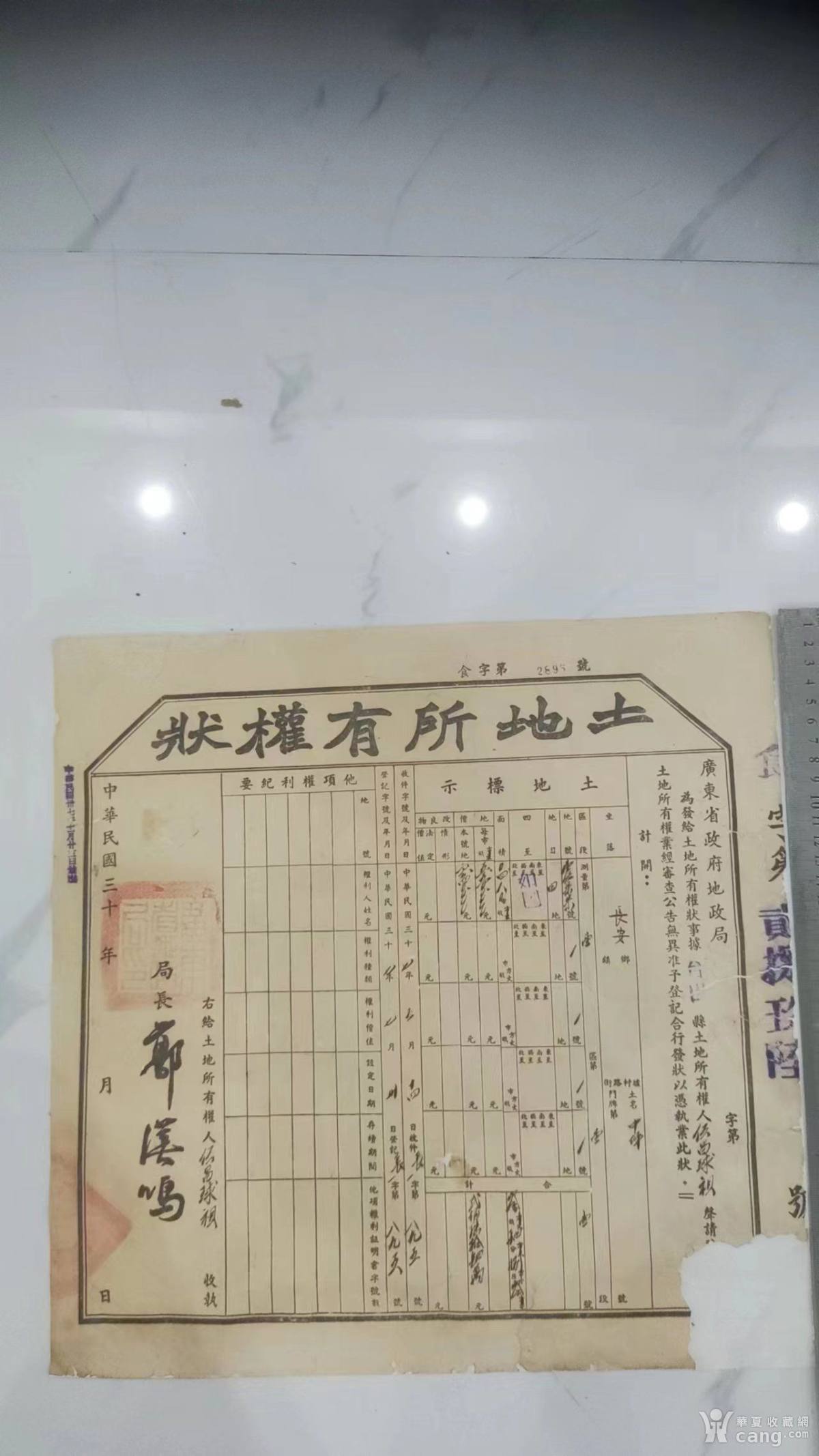 1948年台山县食字第2896号(右上角及右骑缝)土地证一个