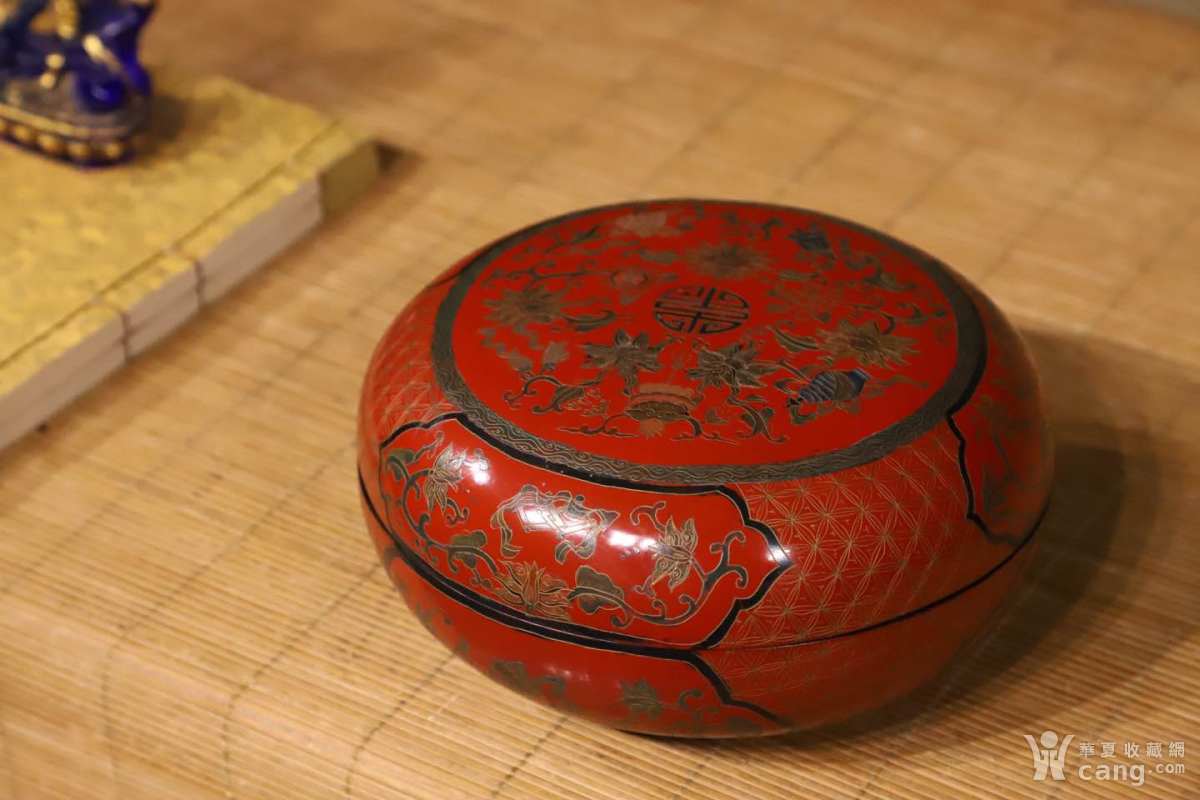 朱红漆彩绘佛家八宝捧盒 此盒圆润饱满,线条优美流畅,表
