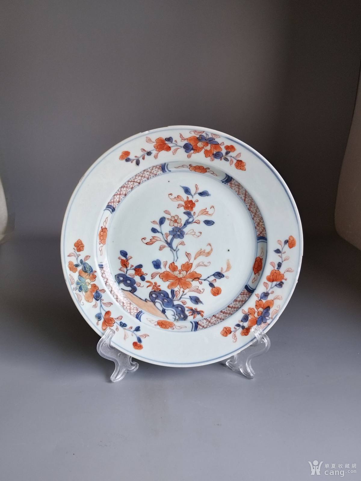 清康熙青花矾红描金花卉盘