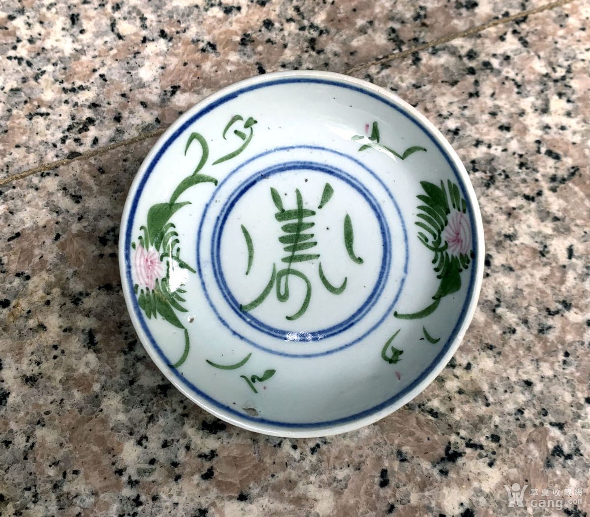 民国礼陵窑釉下三彩花卉寿字盘全品釉肥漂亮