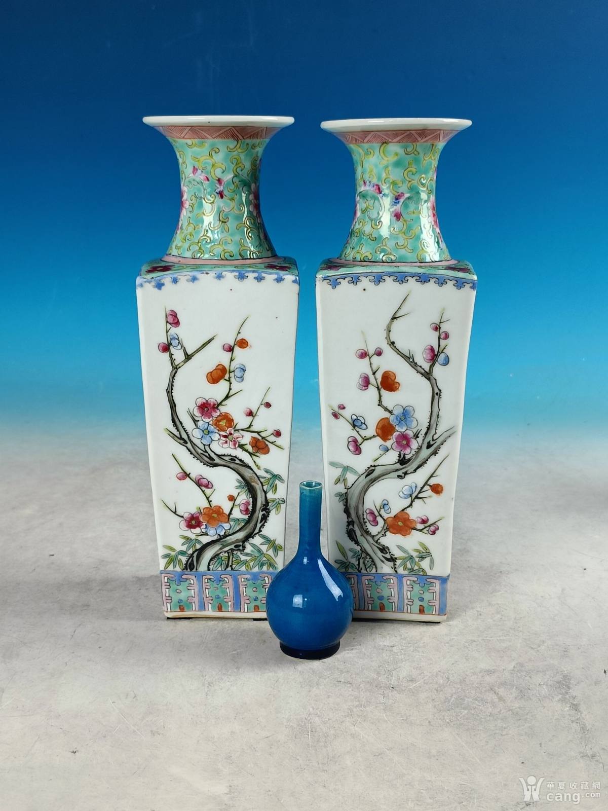 清晚期粉四季花卉纹天圆地方赏瓶一对