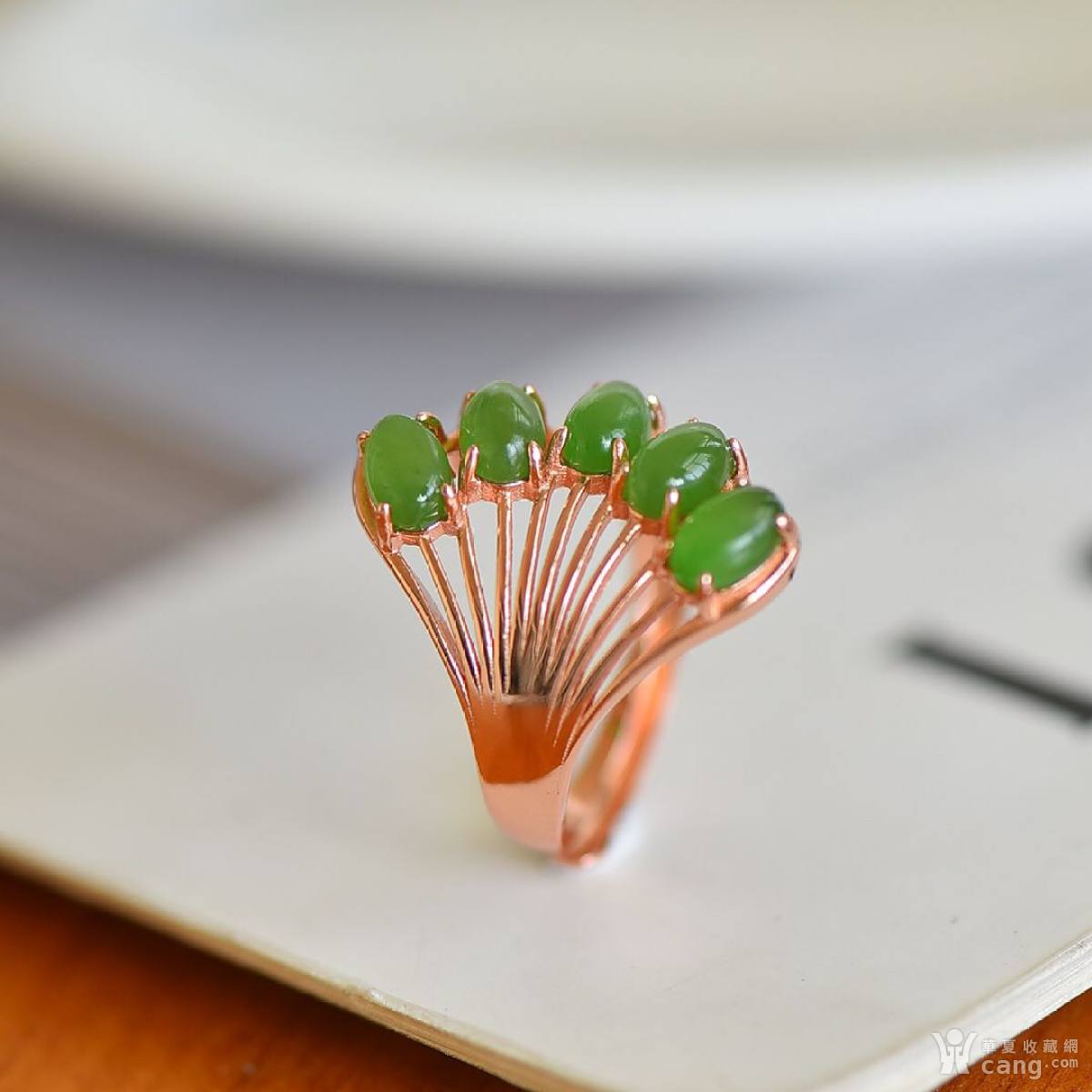银镶和田碧玉多蛋面戒指