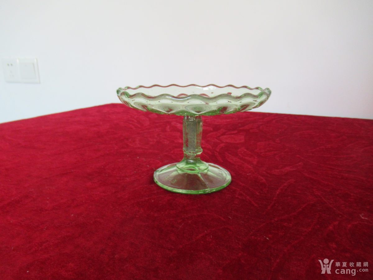 高足盘收藏】民国绿釉玻璃小棱形波浪边纹高足糕点果盘(完美品)