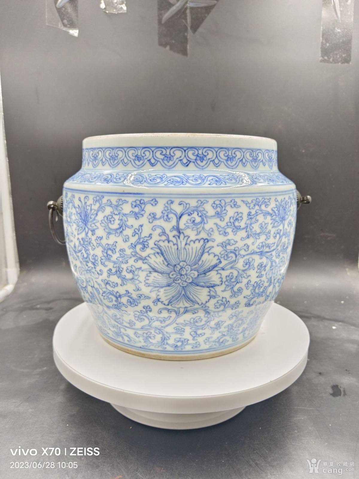 精细雍乾青花缠枝牡丹如意纹大粥罐