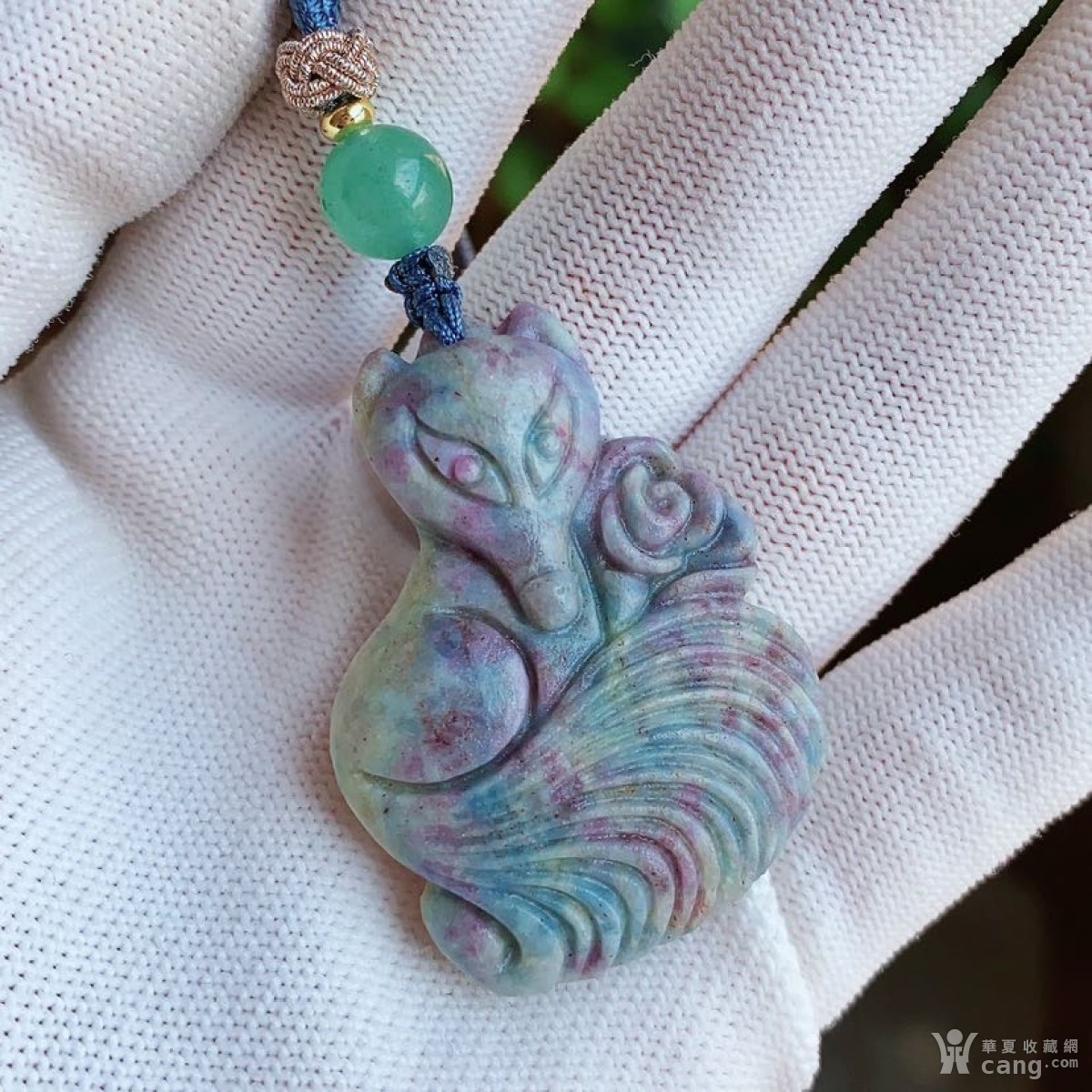 B663完美无裂天然原矿缅甸红蓝宝红宝石玫瑰花小狐狸吊坠!
