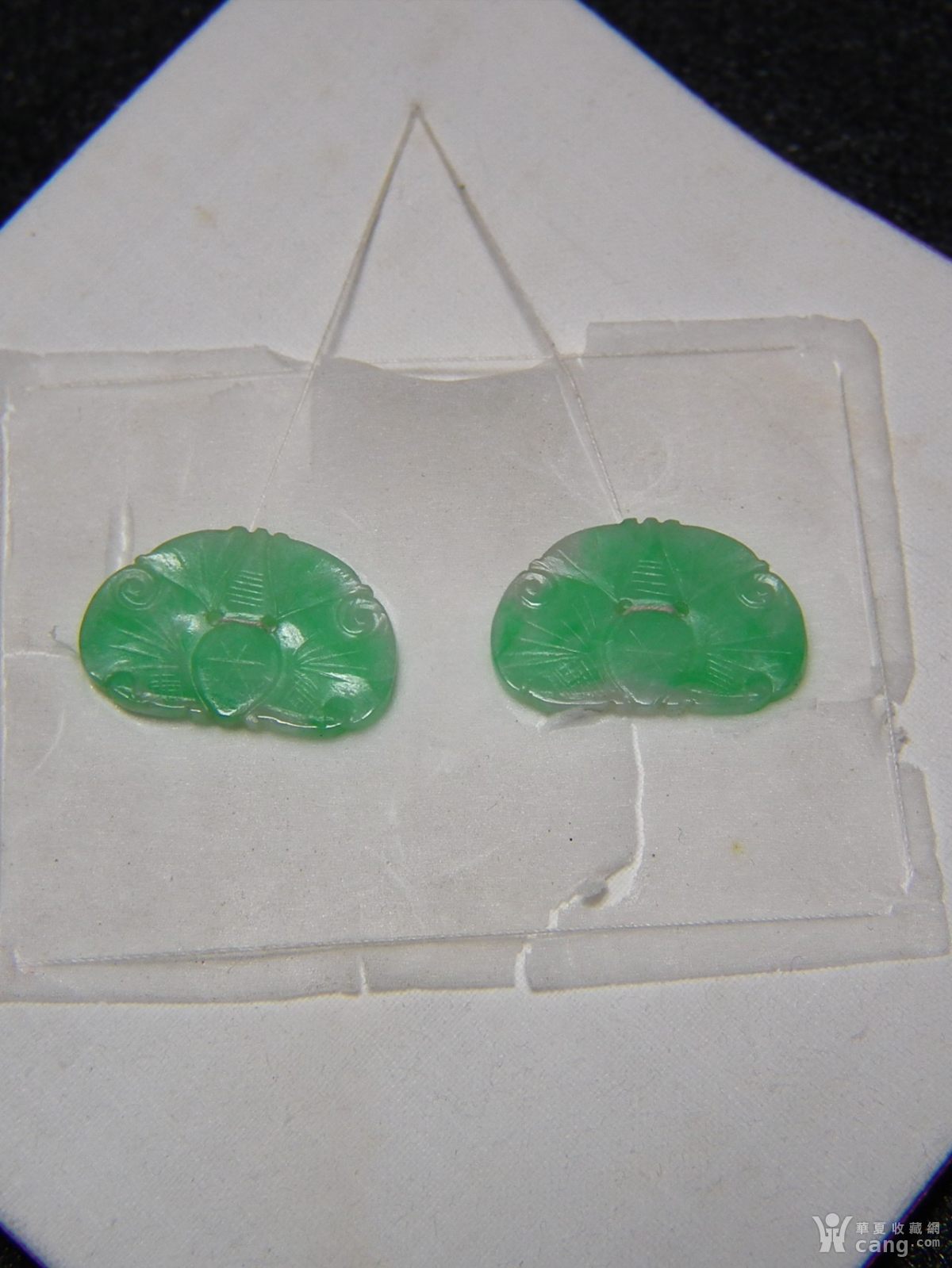 0108 清.老坑A货飘阳绿色翡翠单面工双孔蝴蝶坠佩一对