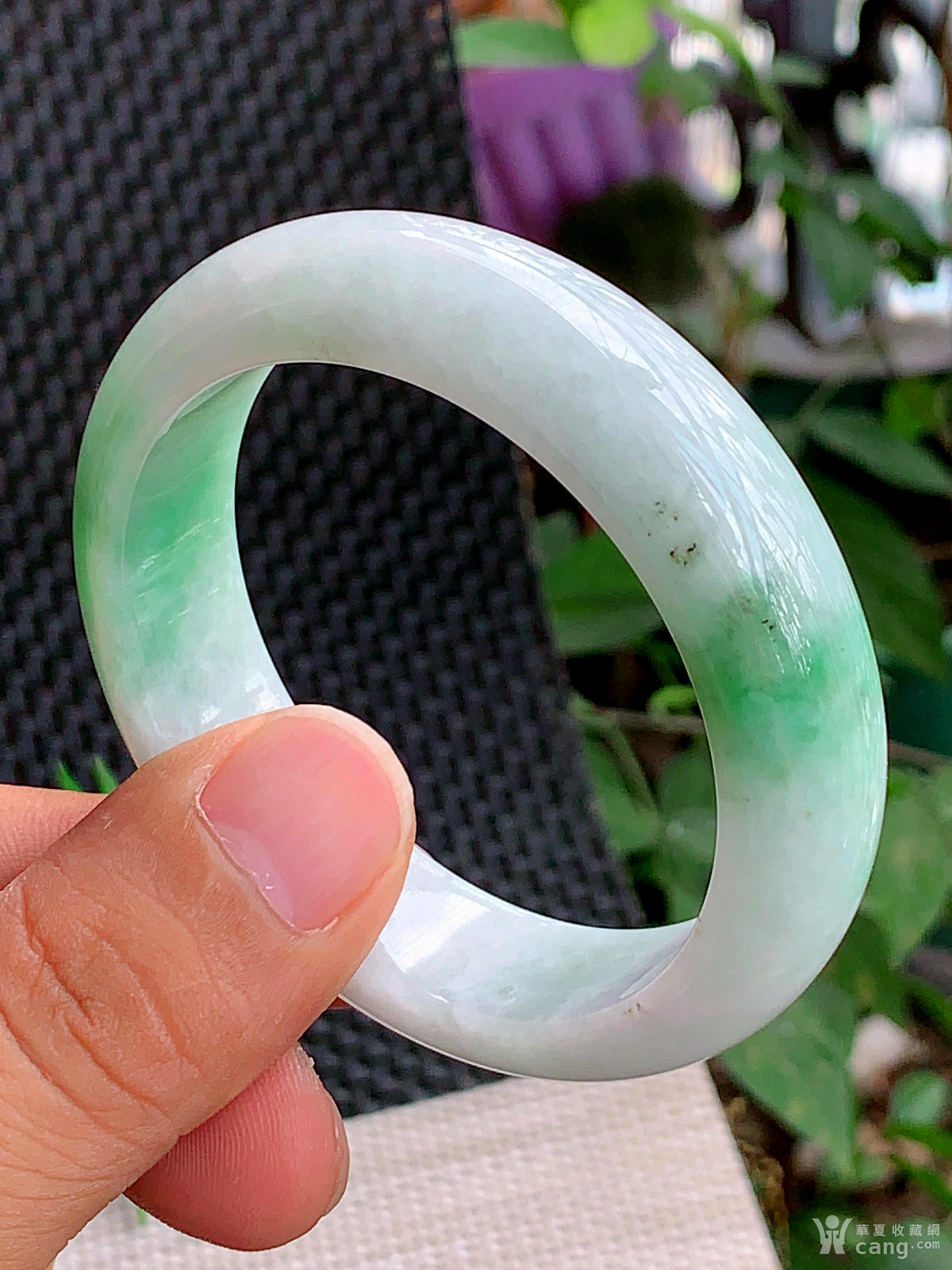 缅甸天然翡翠A货冰润飘花宽边手镯55.1圈口
