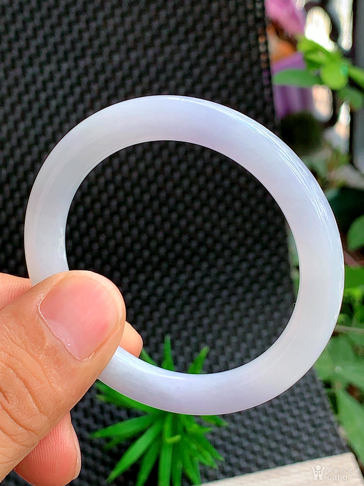 缅甸天然翡翠A货冰透水润紫罗兰圆条手镯51.3圈口