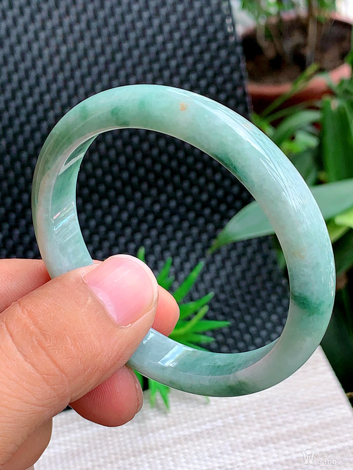 缅甸天然翡翠A货冰润飘花宽边手镯57.6圈口
