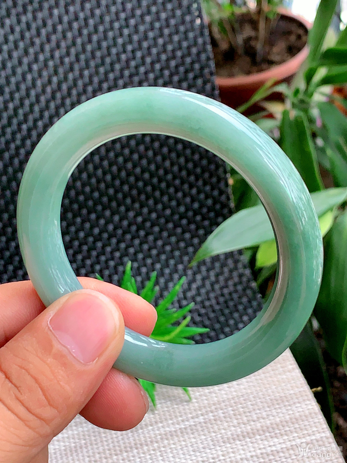 缅甸天然翡翠A货冰润满绿圆条手镯56.5圈口