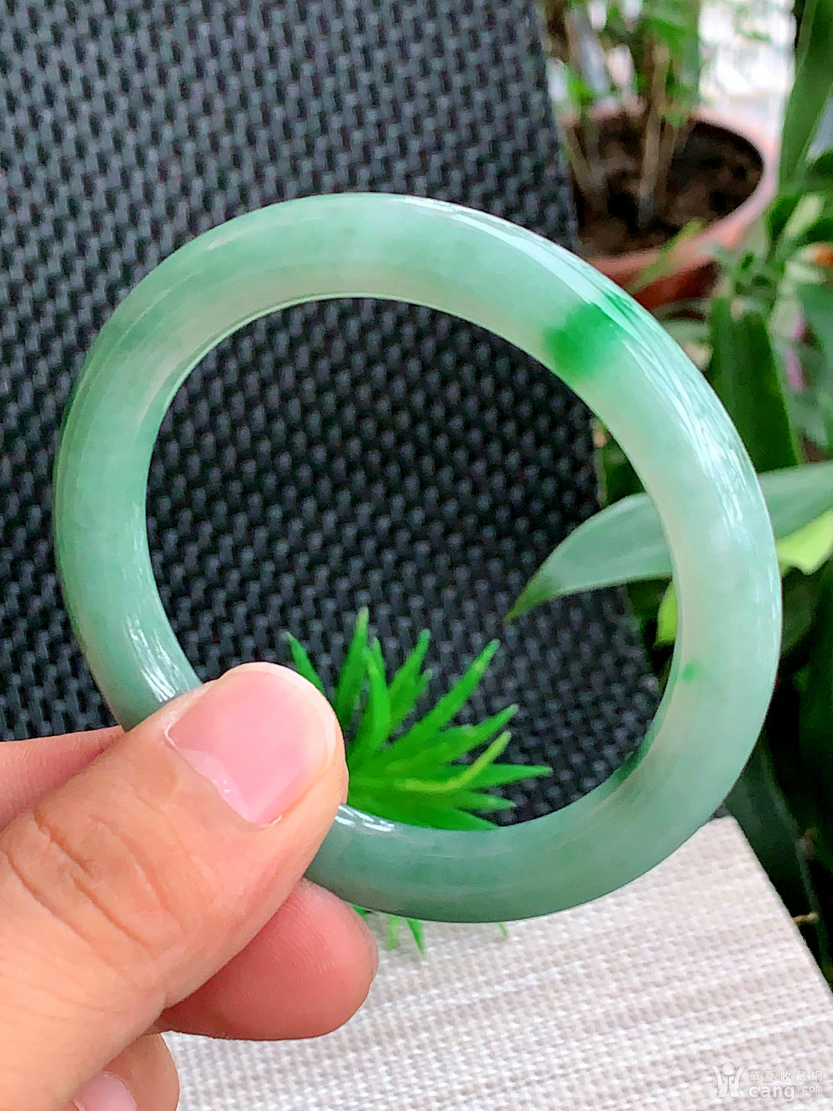缅甸天然翡翠A货冰润飘花圆条手镯58圈口
