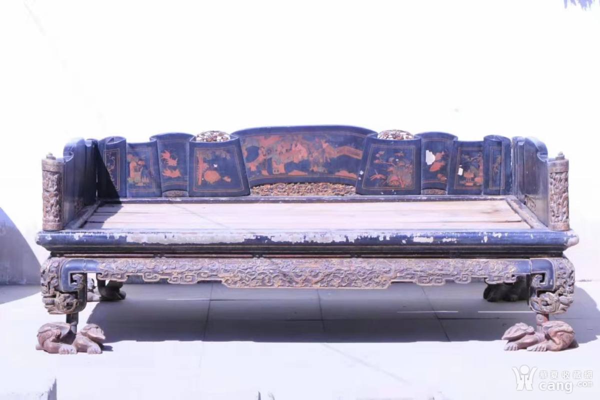 大漆披麻灰金漆•床榻: 整器大漆披麻灰,