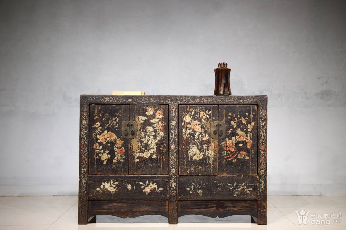 大漆五彩联体柜 此连体柜器型方正,两对门,黑漆浑厚,表