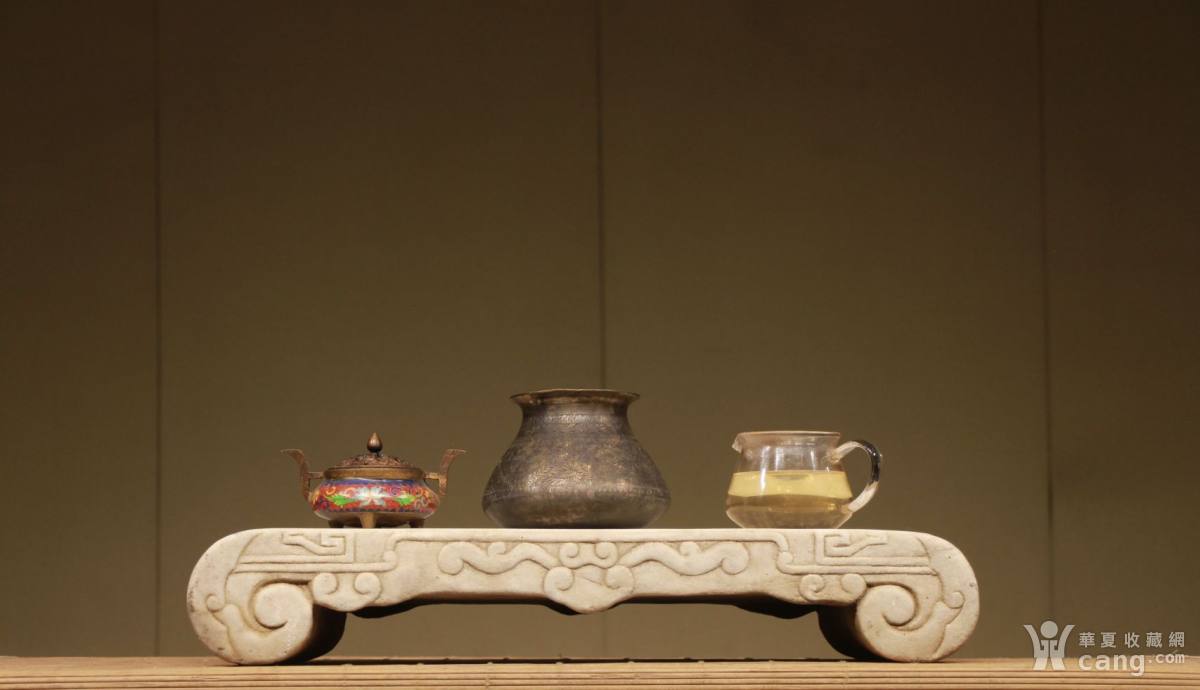 汉白玉卷几 此几线条流畅优美,两侧浮雕博古纹,石质细腻