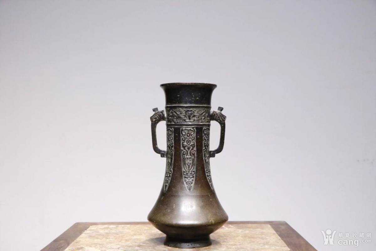 双耳饕餮纹【花器】;青铜造型,古朴且线条优美,包浆皮色自然,
