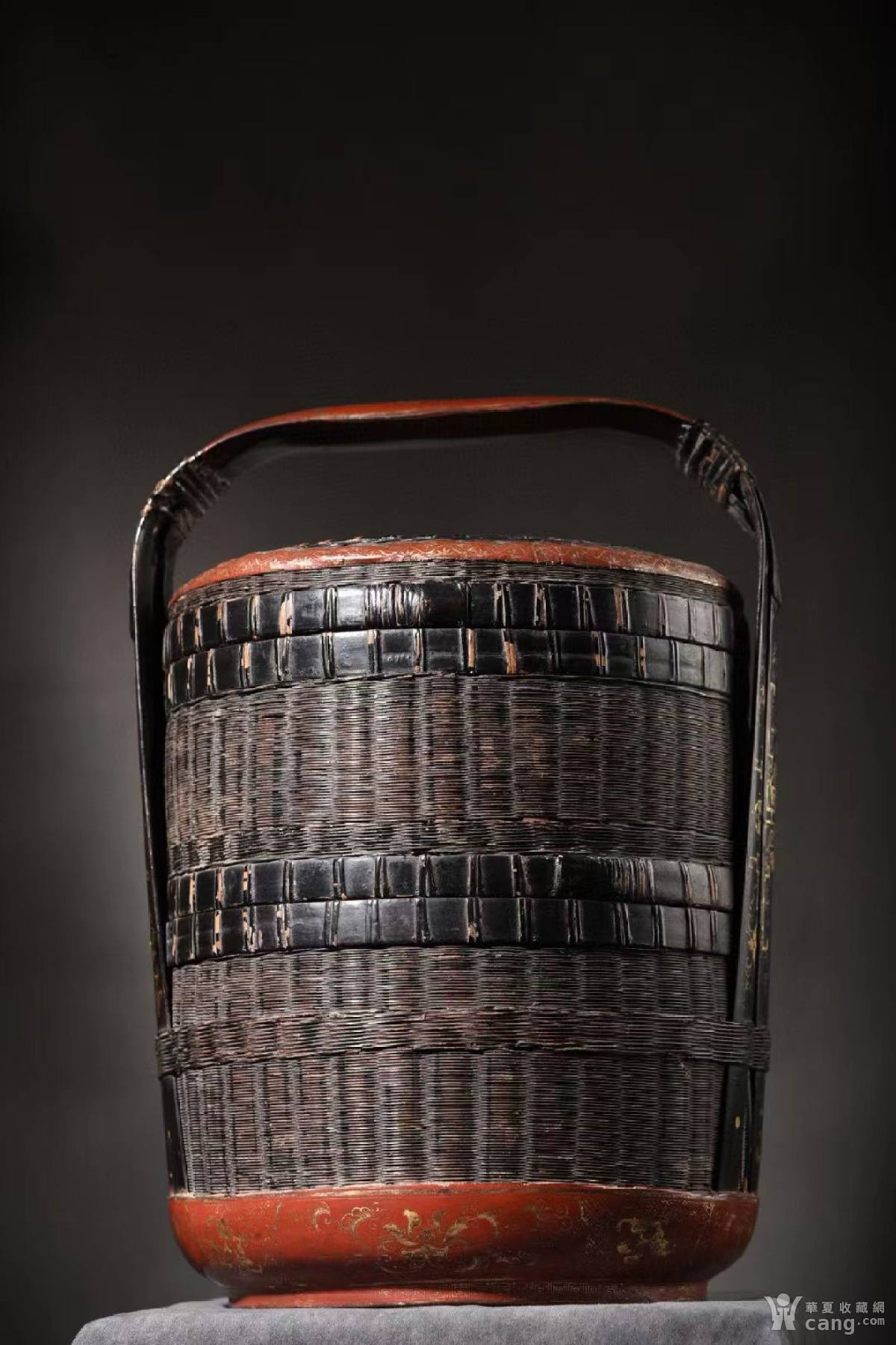 清夹伫胎大漆朱红地描金龙凤纹提梁食盒 高45cm