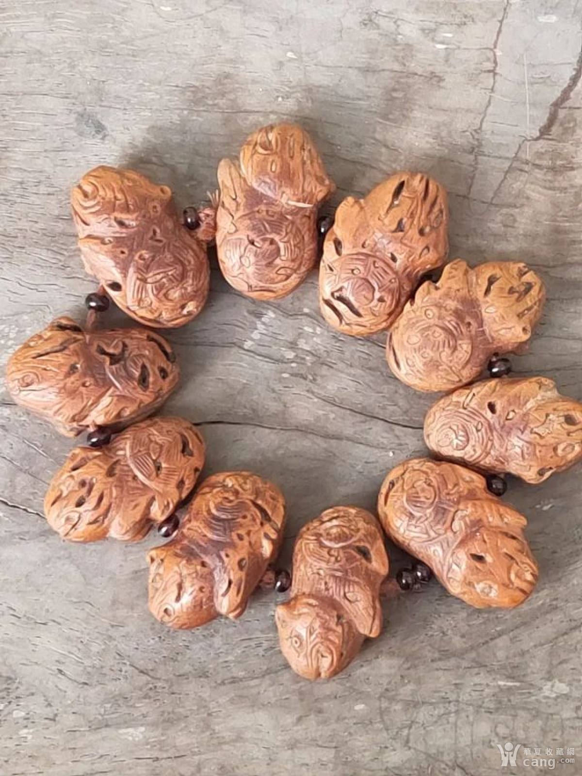 清代老【橄榄核微雕】虎虎声威手串,双面微雕,