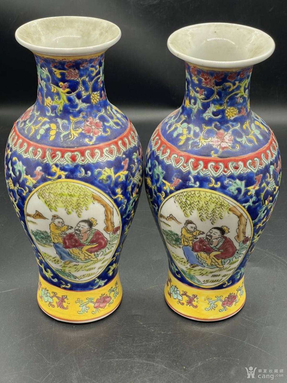 大清乾隆年制粉彩官窑赏瓶一对,釉色饱满漂亮突出,绘画精美绝伦