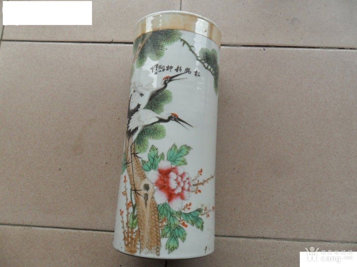 民国早期粉彩松鹤延年帽筒一件