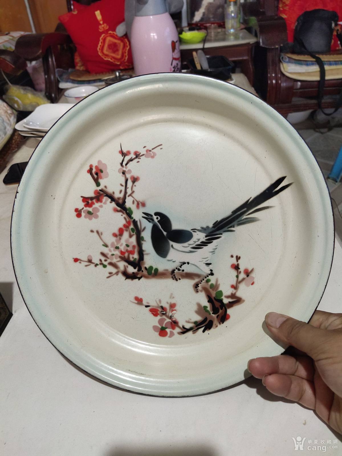 60年代喜鹊登梅搪瓷盘一个,边沿小磕皮一处,背面小磕皮3处,