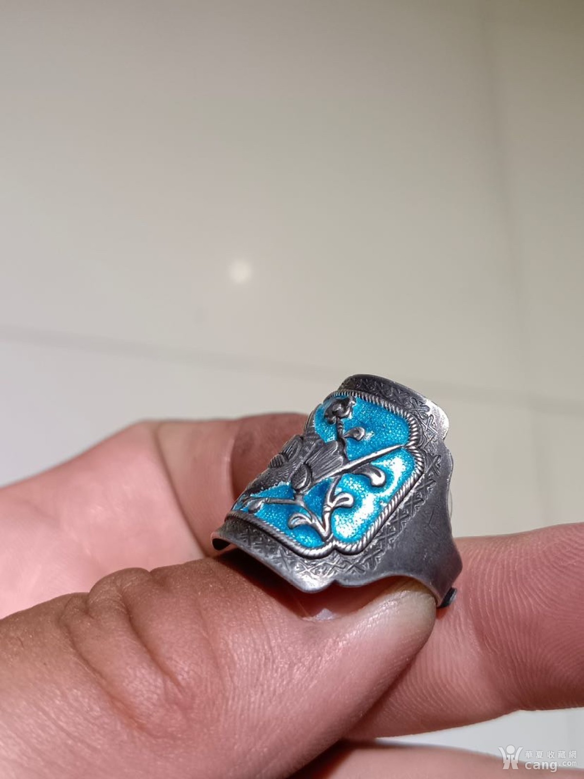 清代银烤蓝戒指,内有“亿源”款,保存完好,品相一流,喜欢的私